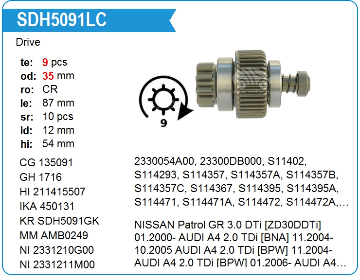 | KRAUF | SDH5091LC | Бендикс стартера | МСК | 6 300,00 руб. | |