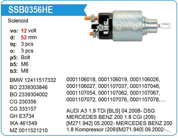 | Motorherz | SSB0386WA | Втягивающее реле стартера маленькое | МСК | 6 300,00 руб. | |