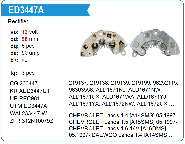 | UTM | ED3447A | Диодный мост генератора | МСК | 4 500,00 руб. |
