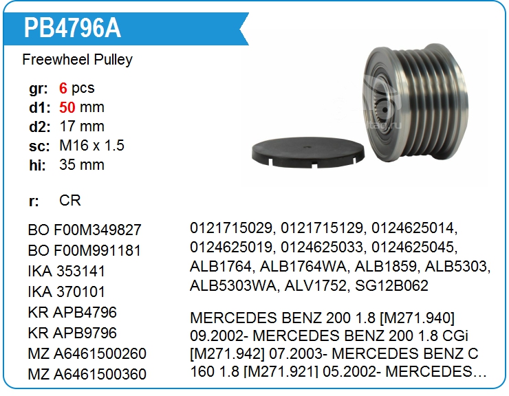| UTM | PB4796A | Шкив генератора обгонный | МСК | 4 000,00 руб. |