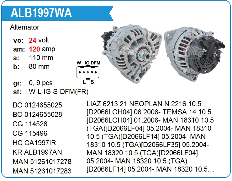 Генератор cо шкивом 9 ручьев